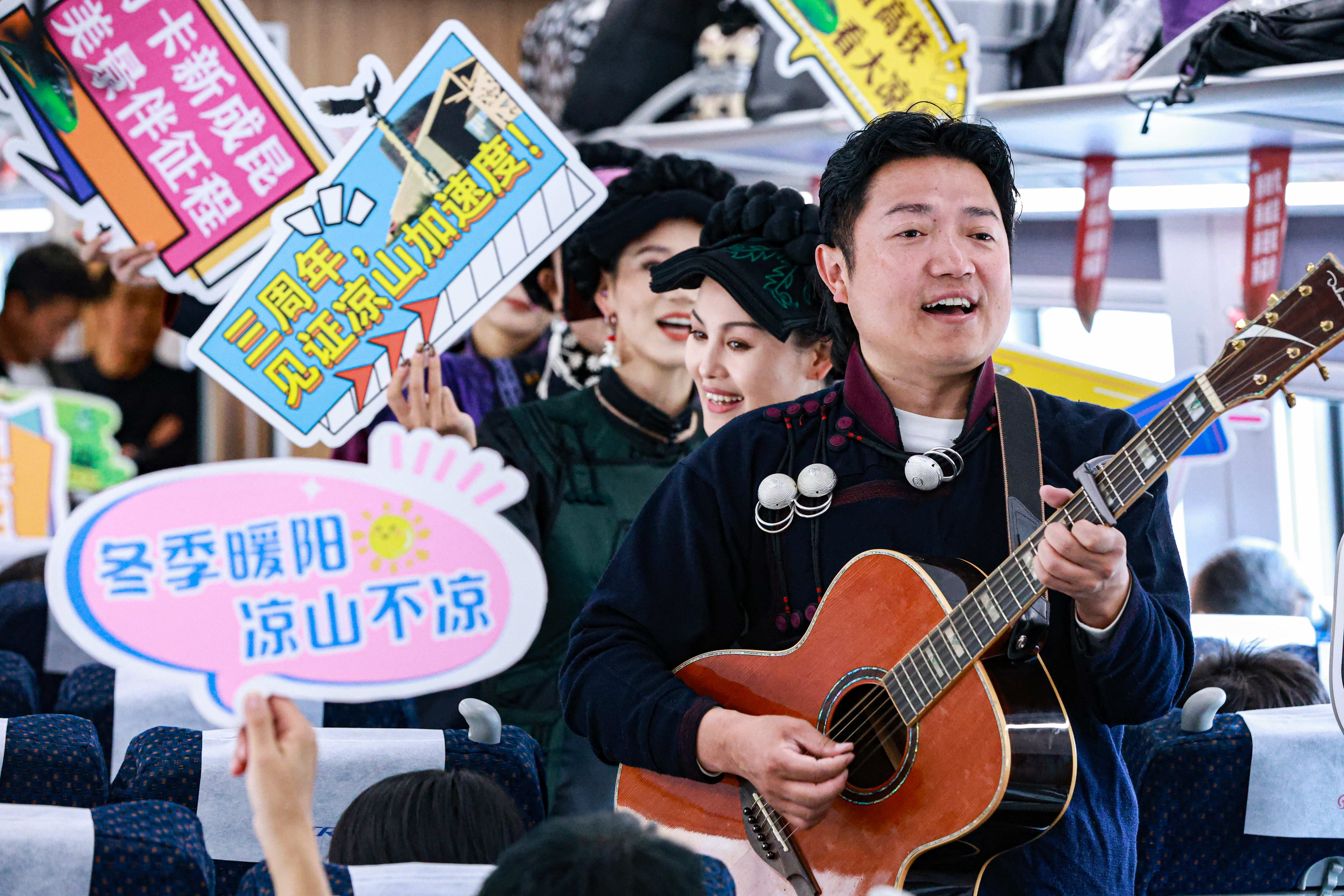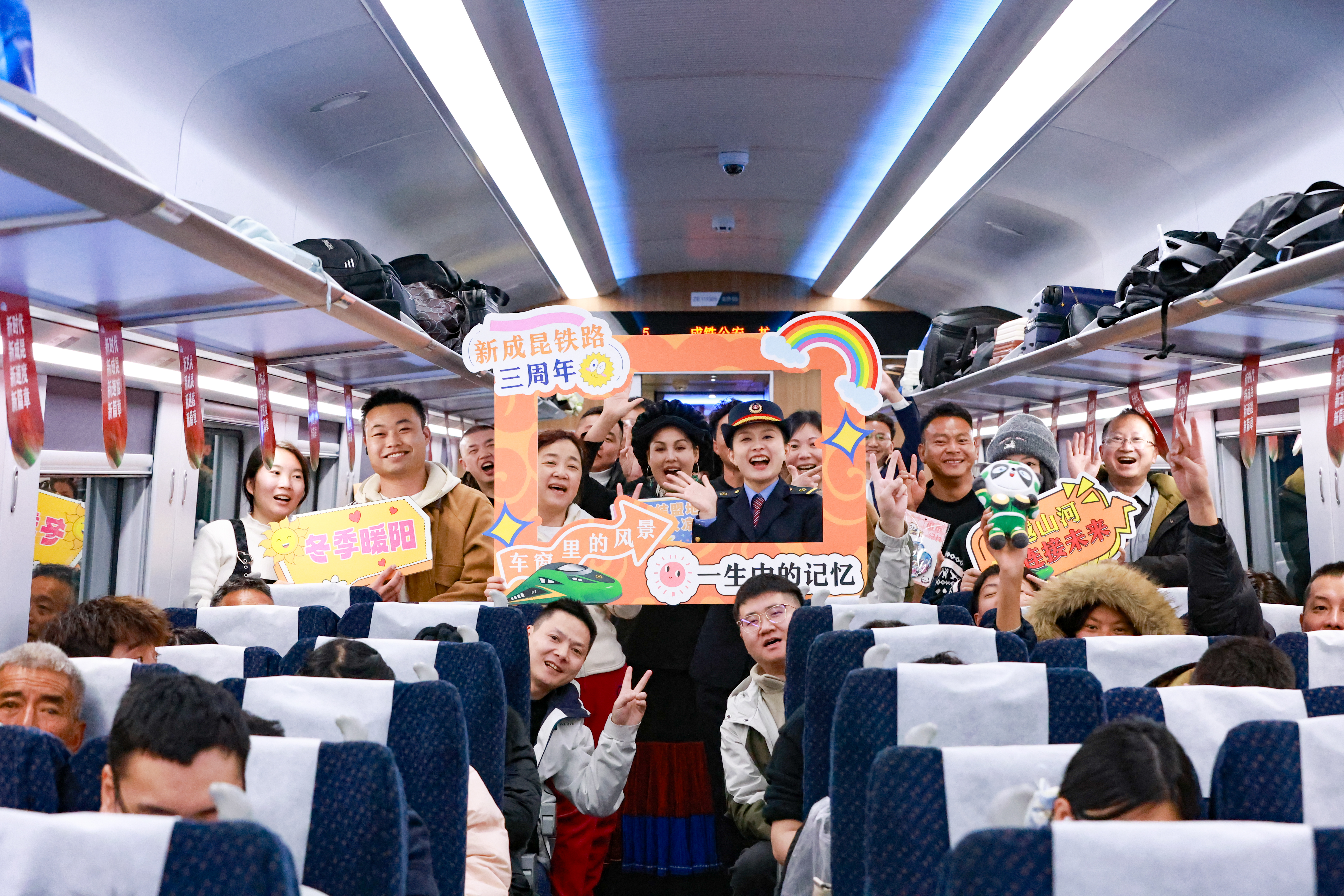 新成昆铁路开通三周年,列车上开展庆祝活动